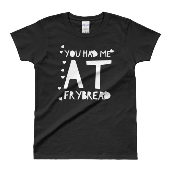 This one screams Valentines Day! Nothing says romance like frybread. This preshrunk jersey knit ladies-cut t-shirt is perfectly fit and of great quality. It will satisfy your needs as it is available in many different colors.